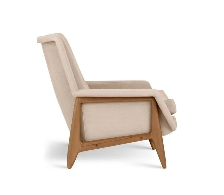 Criada em 1956, esta poltrona é a versão alta da original, que marca o início da produção de peças estofadas da Taba, fábrica fundada por Sergio Rodrigues e protagonista na consolidação do design moderno brasileiro nas décadas de 1950 e 1960. Com forte presença histórica, a peça reflete a inovação e a sensibilidade do designer. Seu desenho evidencia a busca por uma linguagem autêntica, tornando-se um marco na evolução da fabricação de mobiliário nacional.