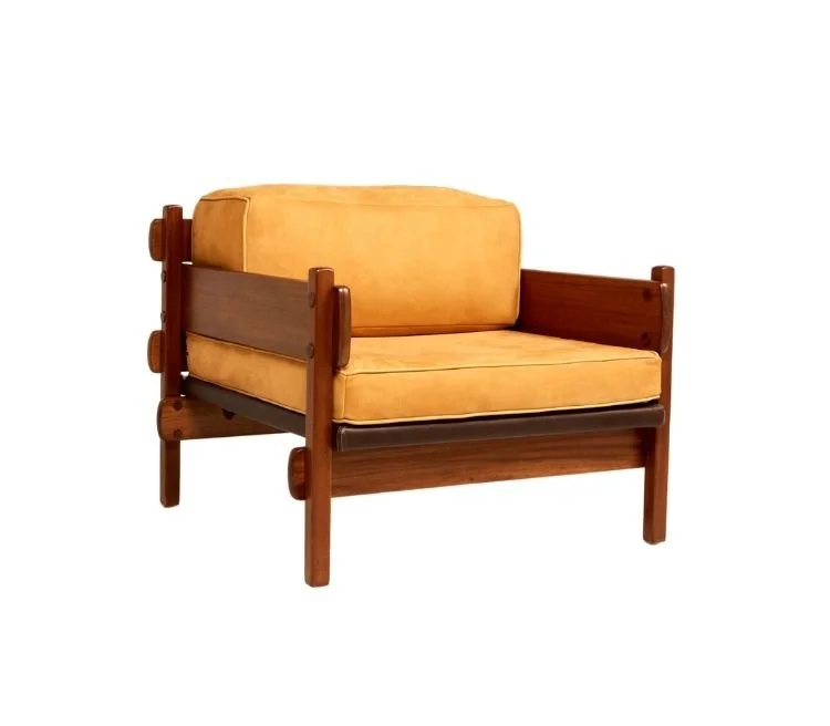 Desenvolvida em um período em que Sergio Rodrigues explorava a sobreposição de elementos como solução estrutural, esta peça revela inteligência construtiva aliada à simplicidade estética. Apesar da aparência discreta, exige encaixes precisos, fundamentais para acomodar o contorno arredondado de suas formas.